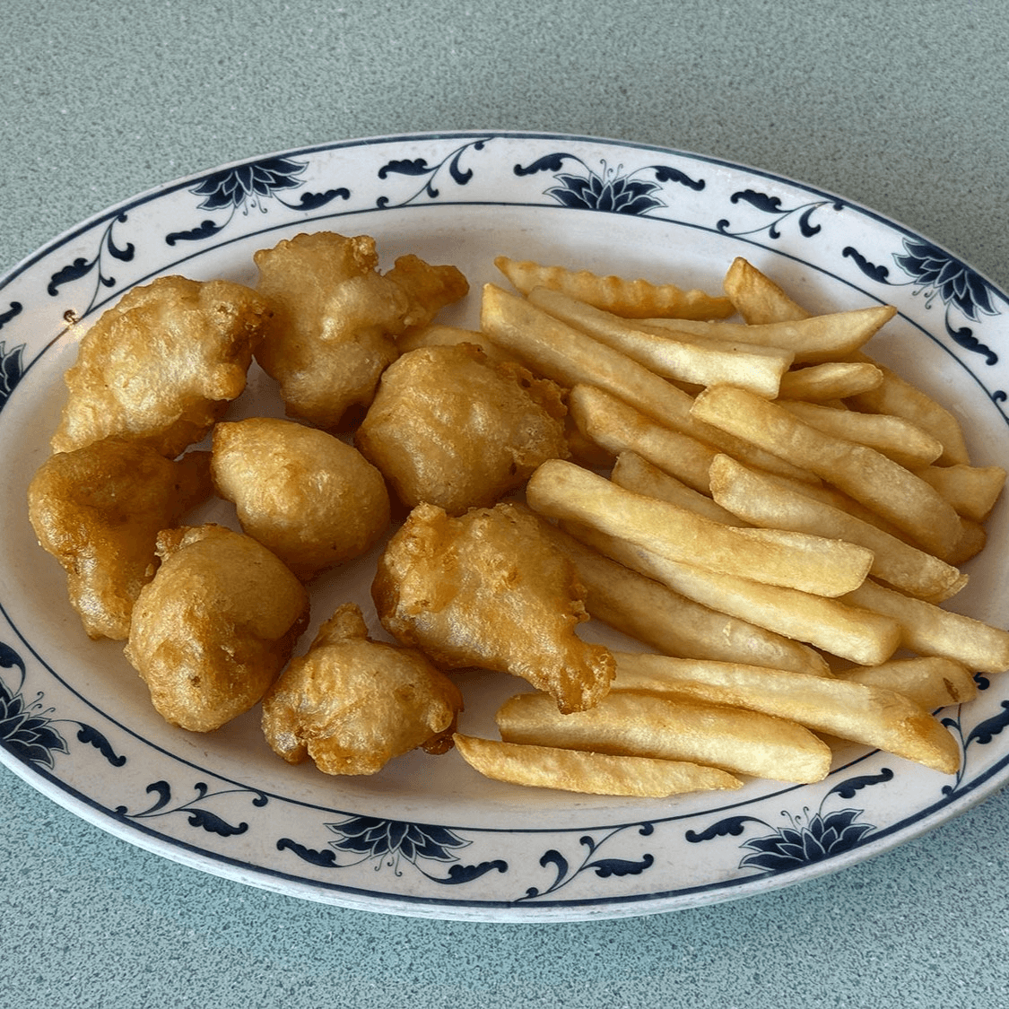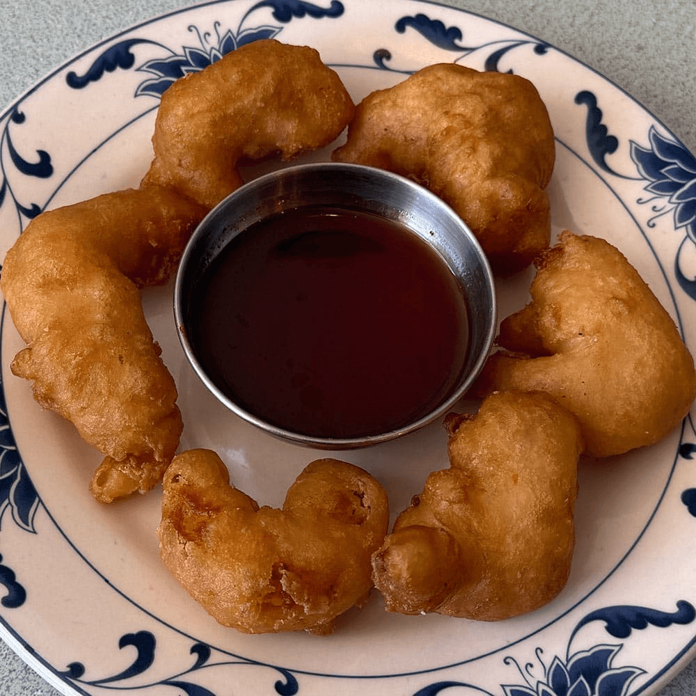 Six large shrimp are lightly battered and fried until crisp. Served golden and hot, they’re a crunchy, savory seafood treat that’s great for starting or sharing.