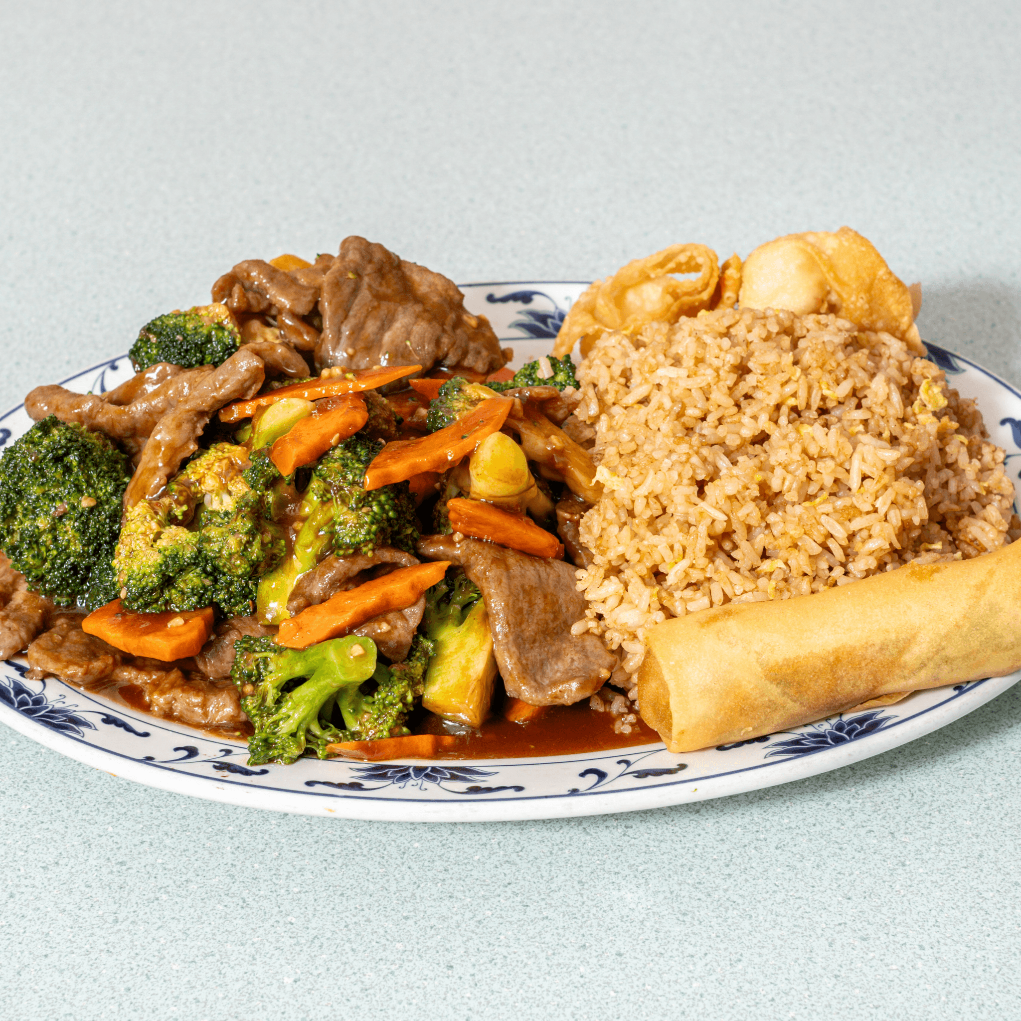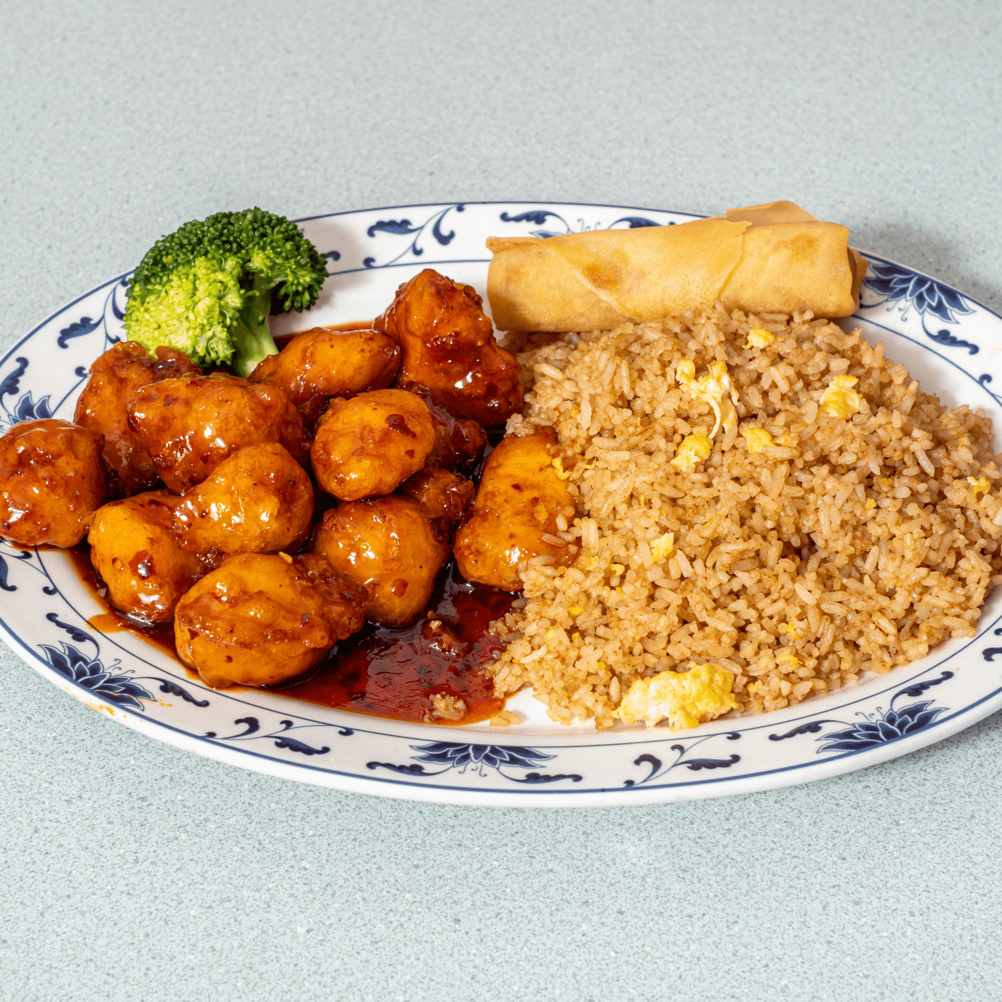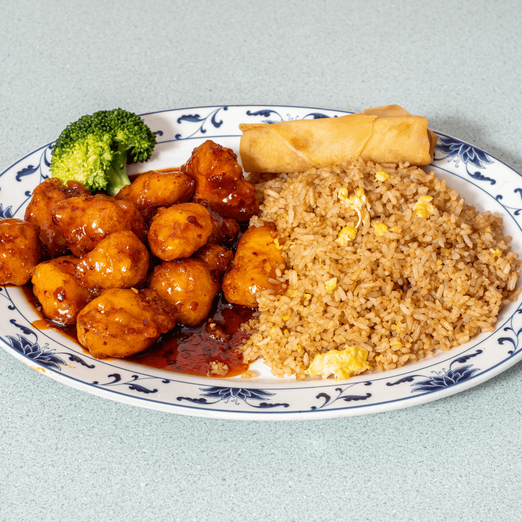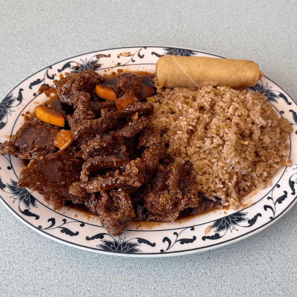 Our most popular dish features crispy chicken or beef tossed in a vibrant orange glaze that’s both sweet and zesty. This crowd-pleaser pairs beautifully with your choice of rice and an egg roll for a satisfying lunch.
