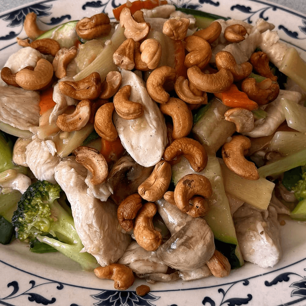 Wok-seared chicken and vegetables tossed in a savory brown sauce and topped with crunchy roasted cashews. Rich, nutty, and satisfying.