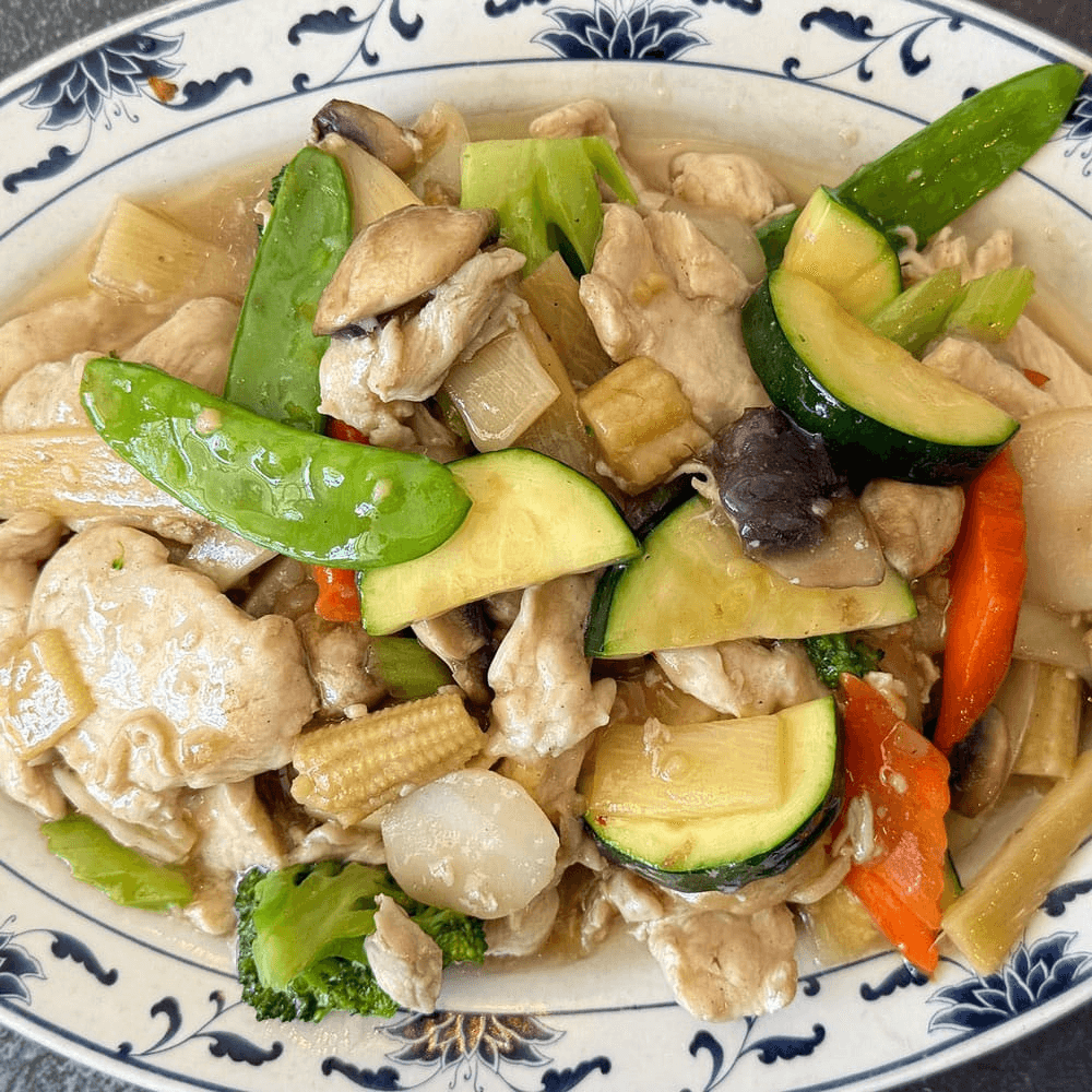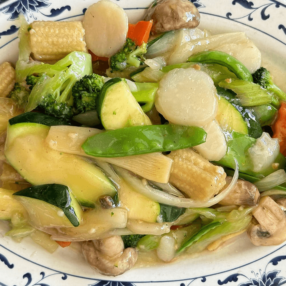 A veggie-lover’s dream—fresh vegetables stir-fried in light garlic or brown sauce. Clean, flavorful, and always fresh.
