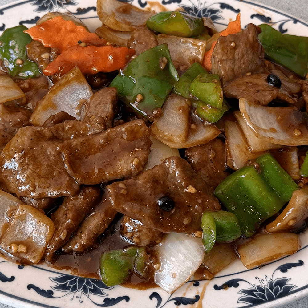 Classic Chinese-style pepper steak stir-fried with onions and bell peppers in a bold brown sauce. A timeless, hearty dish.