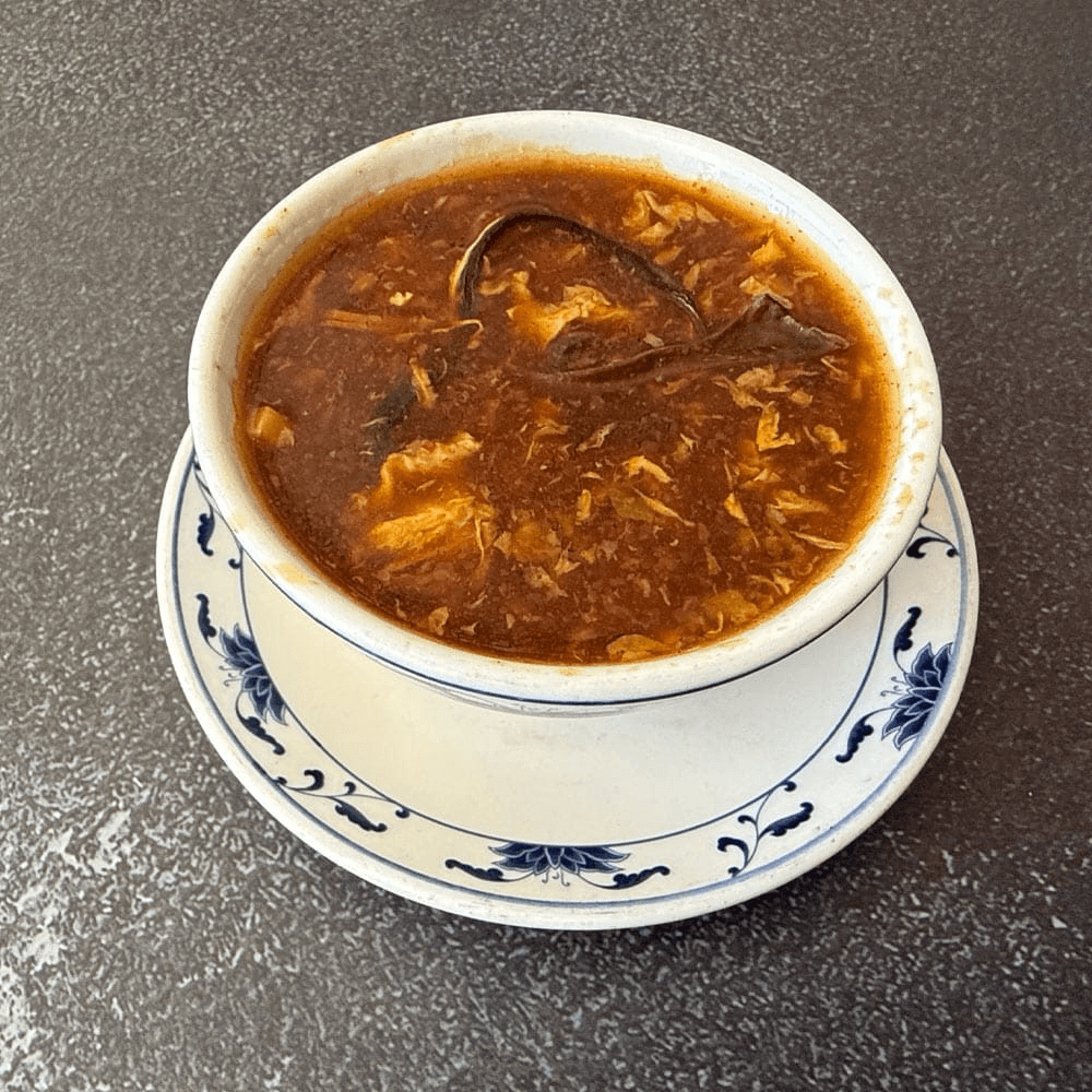 A spicy, tangy broth with tofu, bamboo shoots, mushrooms, and egg. Bold and warming.