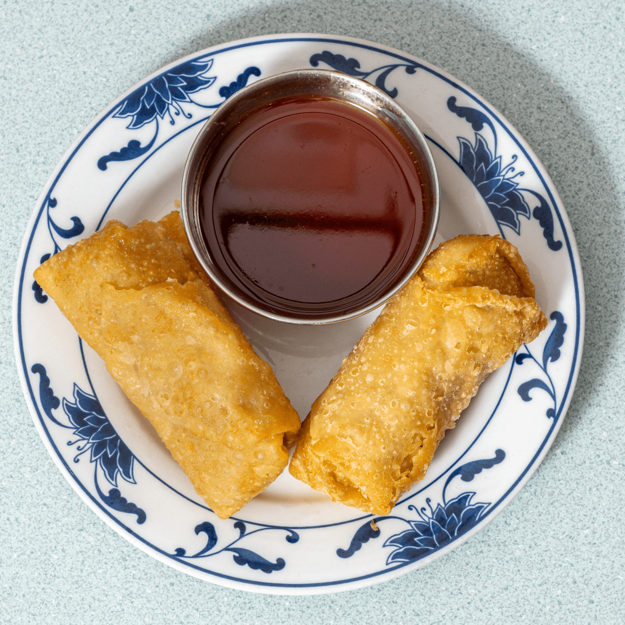 These crispy pork egg rolls are stuffed with seasoned ground pork, cabbage, and carrots. Fried until golden and served in pairs, they’re a crunchy, savory way to start your meal or share with a friend.