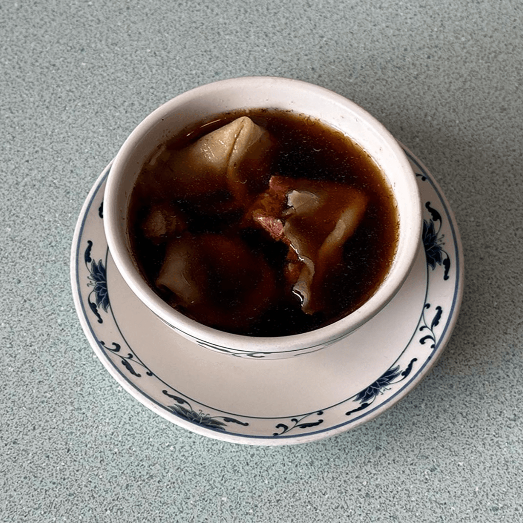 Tender pork-filled dumplings in a savory broth with scallions. Classic and cozy.
