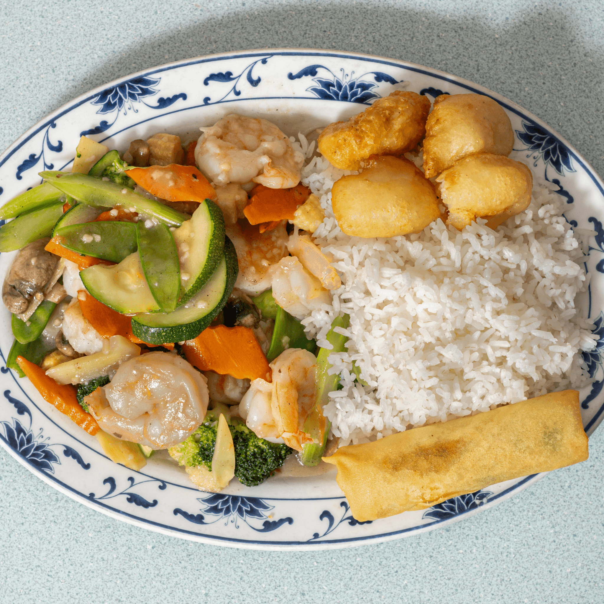 Pick your protein and pair it with mixed vegetables in a light garlic or brown sauce. Balanced, customizable, and satisfying.