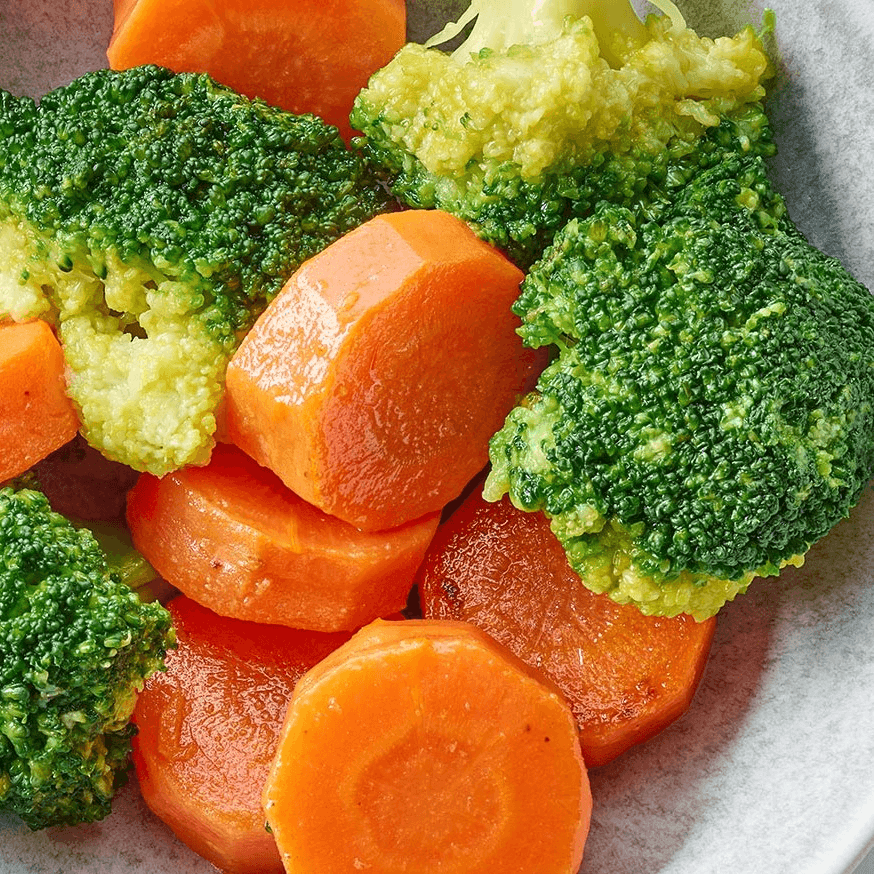 A fresh medley of steamed vegetables served plain or with optional protein. Light, colorful, and nutrient-dense.