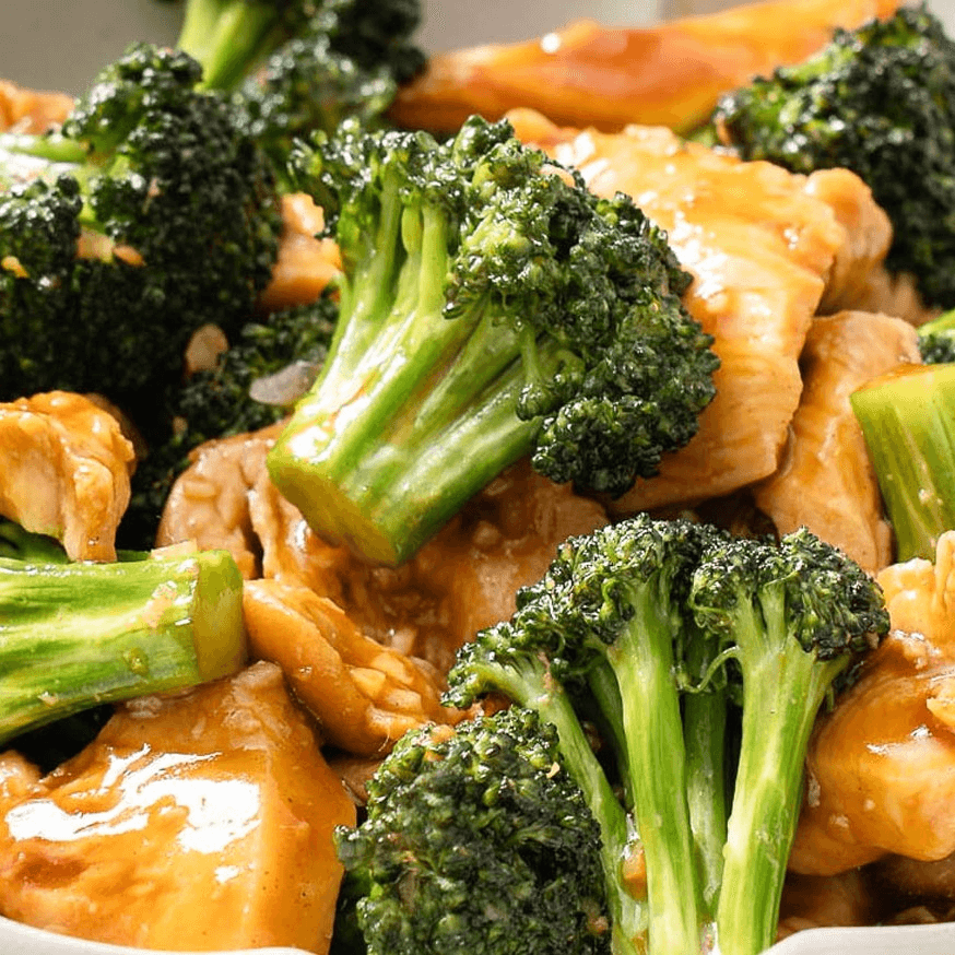 Chicken or Beef—stir-fried with fresh broccoli in a savory brown or garlic white sauce.
