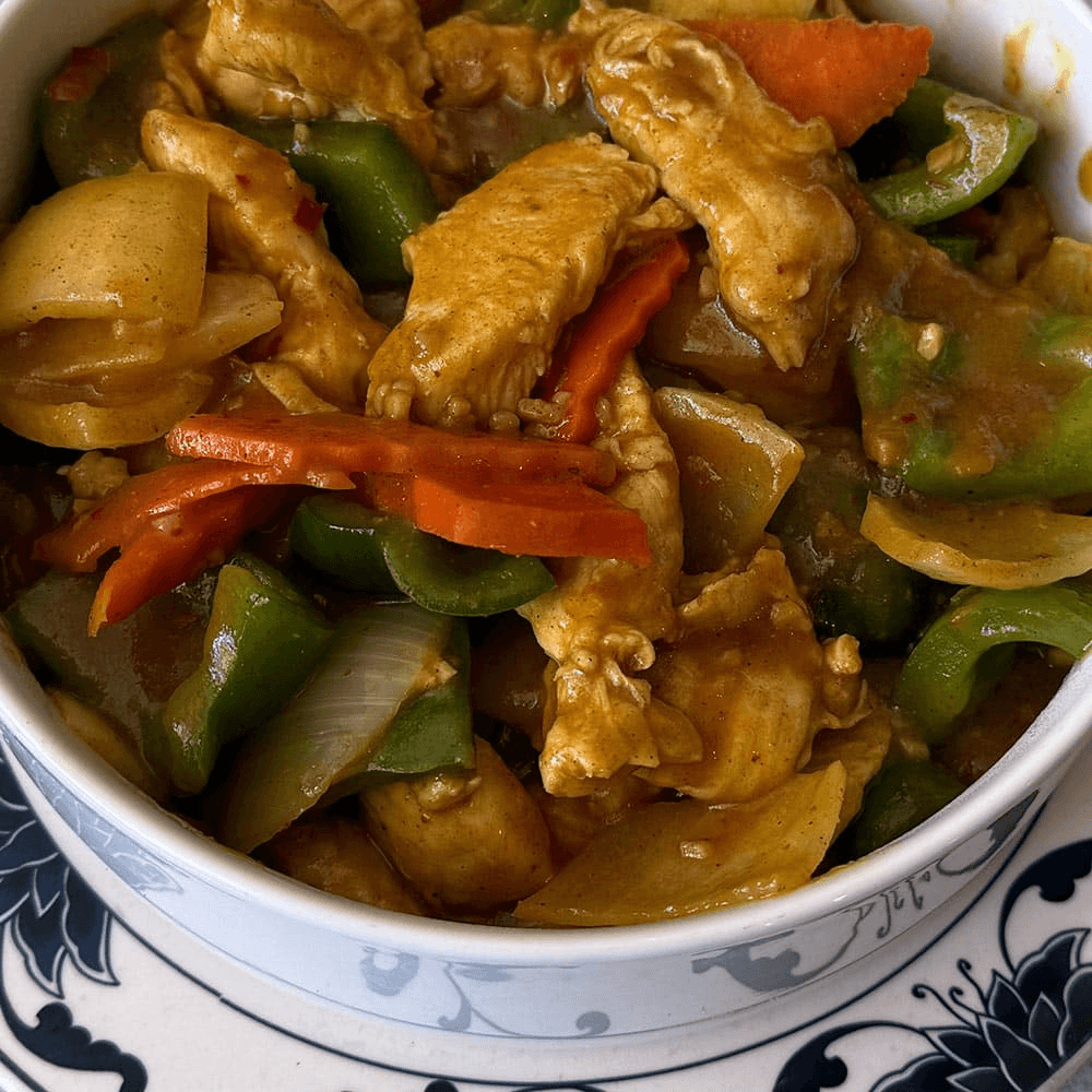 A warm and aromatic stir-fry with chicken, Beef, Tofu or Shrimp (for +$1 extra) and vegetables in a house-made yellow curry sauce. Fragrant, hearty, and comforting.