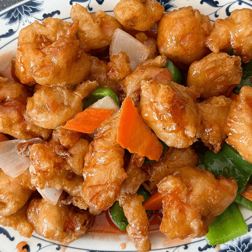 A classic takeout staple, this dish features lightly battered protein drenched in a bright sweet and tangy sauce with bell peppers and pineapple.